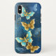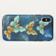 Composition de flying, jewelry, or et dark butterflies on textured jewelry background. Golden butterfly.
