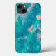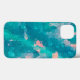 L'œuvre d'art abstraite originale de ZoeSPEAK sur cette coque d'iPhone 13 a été réalisée à partir de la photographie originale de Zoe de gouttes de pluie sur une feuille dans le jardin. Les couleurs du design sont des bleus aqua tropicaux et des roses pêche.