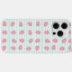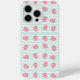 Design amusant avec fraises roses et rayures bleu clair, parfait pour l'été.