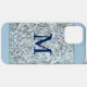 Ce design Monogram, présente un cadre carré, bleu, entourant un mélange, motif de couleurs, en marbre de granit bleu, bleu clair, jaune, blanc, gris et noir simulant.