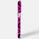 Belle pièce contemporaine de style bohème Ikat, rose chaud et noir, de style bohémien, lèche le motif. Design hipster original, élégant et branché pour le designer artistique sophistiqué, diva de mode artistique, populaire branché, rétro vintage, style Art nouveau déco, ou amateur de motifs géométriques numériques graphiques abstraits qui veut protéger leur téléphone de la poussière et de la saleté, de l'usure et de la déchirure. Cette conception est disponible pour iPhone 6, 7, et 8 Plus, 10 ou X, XR, XS, 11, 12, 13 Mini, 14, 15 Plus et Pro Max coques de téléphones cellulaires. Montrez votre style, regardez à la mode, et sentez élégant avec un design unique sur un accessoire mobile de votre choix.