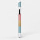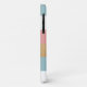 Chic coque iPhone 11, avec un moderne audacieux blanc, rose rose, bleu et or motif à rayures horizontales. Personnalisez le monogramme d'une lettre comme une excellente idée cadeau.