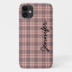 This case for the iPhone is gray and pink plaid with large black script text. Very Retro ! Easy to personalize, ou delete example name Tous les Rights Reserved 2020 Alan & Marcia Socolik