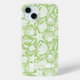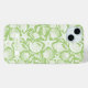 Customize this green shell pattern iPhone 15 plus case with your your name in a trendy modern CAP font in green on white. It's so modern and beachy!
