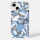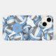 Ce coque iphone à thème volleyball pour filles propose des volleyball de taille variée bleu clair, gris et blanc arrangés dans un motif aléatoire sur un arrière - plan blanc personnalisable — les panneaux bleu et gris des volleyballs sont mélangés avec un motif kaléidoscopique floral pour un aspect girly, artistique qui est encore sportif - customisez son monogramme - par katz_zyd_zyd nouvelles
