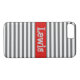 Vous obtiendrez des compliments partout où vous allez avec ce cas de téléphone casemate. Avec un motif rayé gris et blanc avec du rouge au milieu, customisez votre nom.