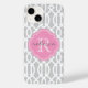 Coques Case-Mate iPhone Gris et rose Trellis moderne Monogramme personnali