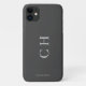 Nom et initiales personnalisés sur coque iphone arrière - plan gris foncé, parfait pour les anniversaires ou toute occasion spéciale. Ce coque personnalisé vous permet d'ajouter un nom et des initiales, ce qui en fait un cadeau unique et personnalisé ou comme un voyage vous-même. Typographie élégante, il allie style moderne et fonctionnalité.