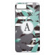Un étui téléphonique monogramed tendance avec motif floral gris et menthe et rayures noires. Un étui téléphonique élégant que vous pouvez personnaliser! Cette conception a des rayures noires et blanches en relief sur imprimé avec un beau motif floral. Customisez le coque avec votre initiale ou votre nom. Conception par JennsEmporium.