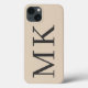 Élégant étui téléphonique en beige avec vos initiales en gros caractères noirs. Boîtier téléphonique chic avec un monogramme propre en lettres noires contre un arrière - plan beige amande. Boîtier de téléphone monogramme en beige et noir