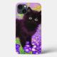 coque iphone avec un chaton noir Gustav Klimt ! Cette beauté aux yeux larges pose dans un champ vert de fleurs violettes. Un cadeau bien pensé pour les amateurs d'art amoureux des chats et autrichiens !