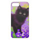coque iphone avec un chaton noir Gustav Klimt ! Cette beauté aux yeux larges pose dans un champ vert de fleurs violettes. Un cadeau bien pensé pour les amateurs d'art amoureux des chats et autrichiens !