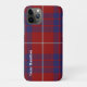 Élégant boîtier téléphone comptoir iPhone 11 réalisé dans le traditionnel tartan écossais rouge, blanc et bleu du clan Hamilton. Le texte blanc qui tourne verticalement, sur le côté gauche, est prêt à être personnalisé. Un moyen élégant et idéal de protéger votre téléphone intelligent, et de faire une idée cadeau formidable.