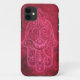 Copie colorée de magenta vibrant d'une peinture originale de médias mélangés d'un symbole de hamsa. Le hamsa est un symbole qui est associé à un code de conduite "Ahimsa appelé," qui signifie que le ` ne font aucun mal.' Les preuves archéologiques indiquent qu'un hamsa de pointage de haut en bas (signification "cinq" arabe et en représentant les chiffres sur la main) a été employé comme amulette protectrice, souvent portée autour du cou pour protéger le porteur contre "l'oeil mauvais". Elles ont longtemps représenté des bénédictions, la puissance et la force.