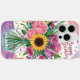 A vibrant, animated phone case featuring a bouquet of flowers, including pink roses, tulips, and a bright sunflower, all arranged in a clear vase. Notice the intricate details of each flower. Colorful confetti fall gently in the background, enhancing the festive atmosphere. Soft, warm lighting creates a cheerful mood, complements the scene. The overall style is bright and celebratory, perfect for a birthday theme.
