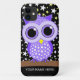 Le pourpre mignon a repéré les caisses et les cadeaux faits sur commande de Coque-Compagnon de l'iPhone 4/4S de hibou pour des amants de hibou, des amants d'oiseau et des birders. Hibou avec l'arrière - plan de nuit étoilée. Cadeaux uniques, colorés et frais de hibou pour des anniversaires, Noël ou toute occasion. Cette conception de hibou est disponible dans plusieurs différentes couleurs ! Vous pouvez personnaliser les caisses de téléphone en ajoutant votre nom.