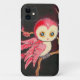 Hibou rouge mignon et doux sur une branche avec les fleurs roses. Art d'amusement qui ferait un grand cadeau pour des enfants, des enfants au coeur, des amants de hibou, et des collecteurs de hibou.