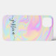 Style esthétique Holographique Élégant Script Signature coque iphone. Personnalisez ce joli design esthétique avec votre nom.