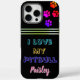 Dans la lumière chaleureuse d'un salon cosy, une main tient fièrement un coque noir frappant orné d'empreintes de pattes colorés. Les mots que j'aime mon Pitbull Paisley se démarquent audacieusement, célébrant le lien fort entre un animal de compagnie et son propriétaire.