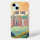 Ce coque iPhone 15 présente une illustration représentant l'horizon de Hong Kong. L'aménagement est décoré dans des tons chauds et relaxants.