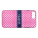 Coques Case-Mate iPhone Hot Pink #2 Wht Polka Dots Navy Blue Name monogram