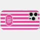 Coques Case-Mate iPhone Hot Pink and White Monogrammed Stripes