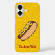Illustration de hot-dog sur arrière - plan de motif alimentaire sans soudure jaune. Texte personnalisé.