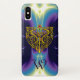 Elégant, unique, coloré art numérique 3D, bijou high tech : coeur d'or, noeuds celtiques, animaux stylisés, pierres précieuses, éclatantes, bleu, rose, lilas fuchsia violet, tourbillons fractaux organiques, vagues. Design, modélisation et rendu très précis par Bulgan Lumini (c) .Partie de la série Hyper Talismans.