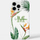 Étonnant, sophistiqué, coloré, oiseaux d'aquarelle tropicale de fleurs de paradis, fausse parties scintillant d'or, et script de calligraphie personnalisée avec un original monogramme audacieux, superposent un arrière - plan blanc élégant et aéré sur ce boîtier de téléphone portable chic, élégant et moderne. Personnalisez avec votre nom et votre monogramme. Fait une déclaration amusante et élégante chaque fois que vous l'utilisez. Un cadeau unique pour un ami, et pour vous-même ! Il suffit de taper l'initiale et le nom du monogramme de votre choix et vous pouvez facilement personnaliser ce boîtier de téléphone portable. S'il vous plaît, envoyez-moi un message avec toute question ou demande.
