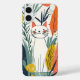 Un adorable chat souriant avec des oreilles orange assis dans un jardin luxuriant illustration est un cadeau parfait pour un amoureux des chats! Les couleurs douces du vert de pin, du jaune doré et de l'orange de brique ainsi que de la marine foncée donnent au design un aspect unique et moderne.