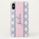 Joli rose pastel et bleu plaid motif iPhone X Coque personnalisé avec votre nom. Changez le nom vous-même lorsque vous commandez.