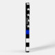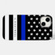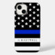 Un coque iphone de drapeau de police de nom personnalisé. Il est doté d'une fine ligne bleue recadrée sur le thème de la police drapeau américain. Entre les lignes est un endroit pour votre nom ou le nom de votre destinataire. Audacieux et dynamique, et une façon de montrer votre amour pour le pays et les forces de l'ordre américaines.