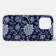 Un coque iPhone 13 Pro élégant avec un motif fleur sauvage vintage sur un arrière - plan indigo.