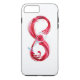 Infinity symbole of continuous stream of red pouring into glass glass glass on white background.