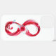 Infinity symbole of continuous stream of red pouring into glass glass glass on white background.