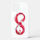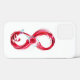 Infinity symbole of continuous stream of red pouring into glass glass glass on white background.