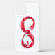 Infinity symbole of continuous stream of red pouring into glass glass glass on white background.