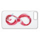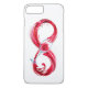 Infinity symbole of continuous stream of red pouring into glass glass glass on white background.