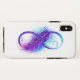 Infinity symbole with a beautiful feather painted in purple and blue bright colors on white background