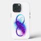 Infinity symbole with a beautiful feather painted in purple and blue bright colors on white background