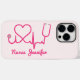 Coques Case-Mate iPhone Infirmière personnalisée rose Nom Stethoscope Coeu