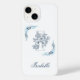Coques Case-Mate iPhone Initiale "I" Monogramme Bleu Calme Floral