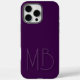Initiales Monogramme violet moderne Téléphone contemporain 16 Pro Max Coques dispose d'un monogramme personnalisé dans la typographie de script moderne. Parfait pour la famille et les amis pour les anniversaires, Noël, vacances, Fête des Mères, Fête des pères et plus. Conçu par ©2024 Evco Holidays www.zazzle.com/store/evcoholidays