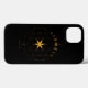 iPhone 13 Coques, Géométrie Sacrée, accessoires Téléphone Décor, phases de lune et fleur de vie en or et arrière - plan noir. Feu d'or Semence de vie. Symbole de la déesse païenne Wiccan, vieille bannière en wicca dorée, cercles d'énergie, style boho
