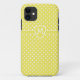 Un Coque Coque-Mate élégant à personnaliser pour votre smartphone iPhone 5/5s, avec un motif Polka Jaune et Blanc Doré et une forme de bouclier pour votre original ou monogramme. Une partie de la collection Posh & Painterly 'Daffy-down-Dillies'.