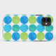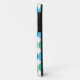 Un coque de couleur vif pour protéger votre iPhone 5, avec un motif abstrait "Blue Moons" en bleu vif et vert néon sur un arrière - plan blanc; d'un collage de papier peint à la main par Judy Adamson.