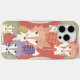 Trendy Retro Vintage Stylisé Cute Fox iPhone Plus. Petits renards élégants décorés de motifs abstraits géométriques en rouge muet, violet et vert, le tout sur un arrière - plan texturé et personnalisé avec votre nom. Couleurs rétro de mignonnes créatures forestières assureront l'attention de tous ceux qui reçoivent pour cette farce de plein parfait!