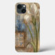 © Silvia Vassileva / Pomme sauvage. L'image montre un iris blanc, et un carrelage carré décoratif sur le côté. La tuile sur le côté gauche a une bordure brune.