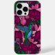 Motif vectoriel sans soudure avec fleurs fuchsia dessinées à la main et colibris