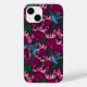 Motif vectoriel sans soudure avec fleurs fuchsia dessinées à la main et colibris